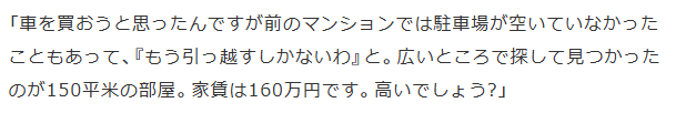 2018年には家賃160万円で150平米の部屋に居住していることを公表しています。