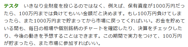 また、投資前に「許容できる損失」を決めることも重要だそうです。