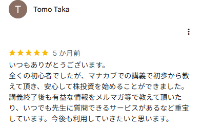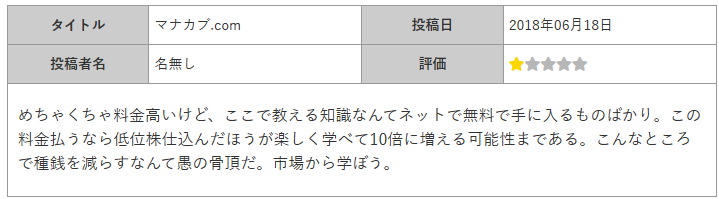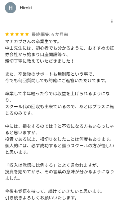 『オンライン株式投資スクール【株の学校 マナカブ.com】』の口コミ