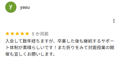 卒業後に孤独な戦いを強いられることなく、いつでも相談相手がいるという安心感は、お金には代えがたい価値があると感じる人も多いでしょう。