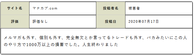大損させられたと恨みの声