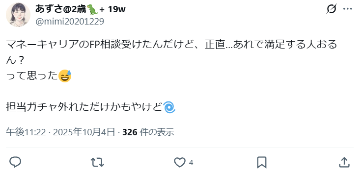「FPと人間的に相性が合わなかった」というミスマッチの問題から、「予約時間に遅れてきても謝罪がない」といったビジネスマナーへの疑問の声まで、FPのレベルにばらつきがあることが指摘されています。