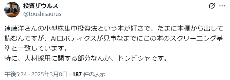 まずは、遠藤氏の投資手法や発信を高く評価する声から見ていきましょう。