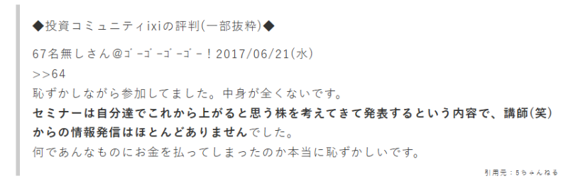 さらにシビアな評判が、投資コミュニティ「ixi」の費用対効果についてです。