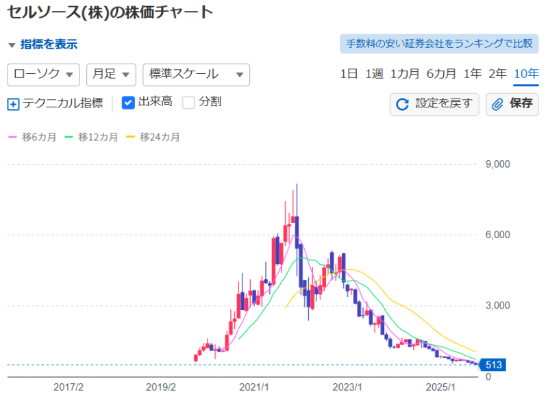 次に検証するのは、再生医療関連事業を手がける「セルソース」です。