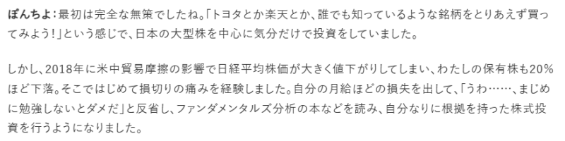 これがぽんちよ氏の投資観を根底から変える転機となりました。