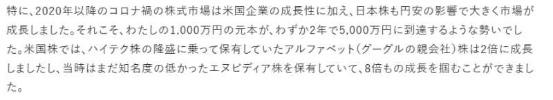 さらに、円安や個別株の成功もあって、1,000万円の元本が2年で5,000万円に到達しました。
