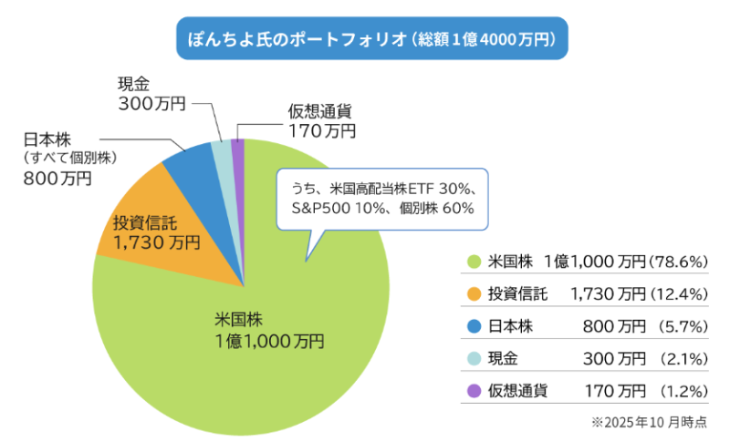 FIRE達成時の資産5,000万円から、ぽんちよ氏の資産はさらに爆発的な成長を遂げます。