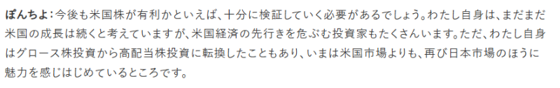 また、ぽんちよ氏は日本株にも魅力を感じているそうです。