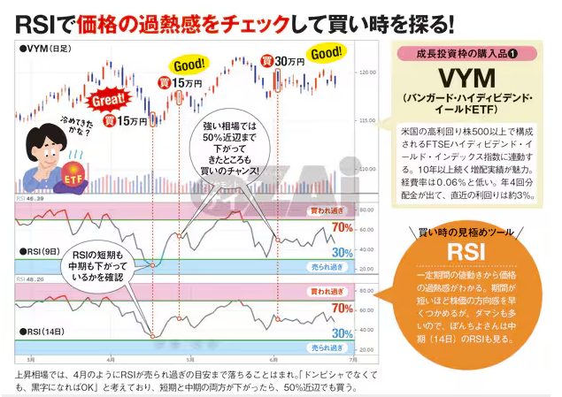 「VYM」の購入タイミングはRSIを参考にしているとのことです。