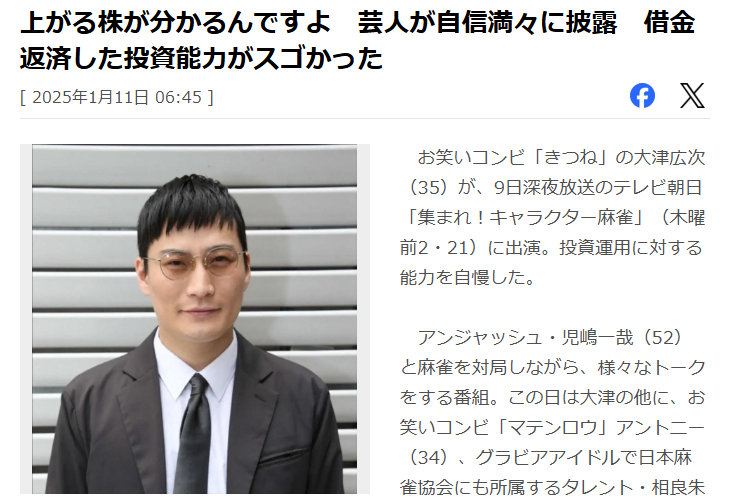 普通の芸人なら借金エピソードは「ネタ」で終わりますが、大津氏は「投資」で完済してしまいました。