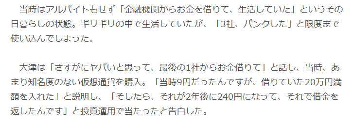 さらに、後述する借金返済のエピソードからもわかる通り、暗号資産(仮想通貨)にもかなり早い段階から手を出しており、大きな利益を上げた経験を持っています 。