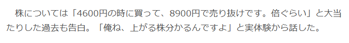 なんと、「俺ね、上がる株が分かるんですよ」とメディアで豪語したことがあるのです。