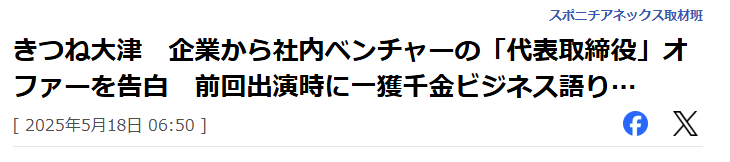 さんま氏も「あれ、偉い話題になって」と驚くほどの反響で、「きつね大津、企業から社長オファー」とニュースにまでなったのです。