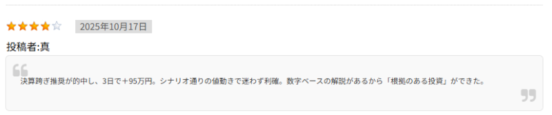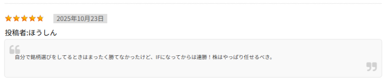 多くのユーザーが「時短」「効率」「使いやすさ」を評価しており、とくに「銘柄選びに時間がかからない」という点が好評です。