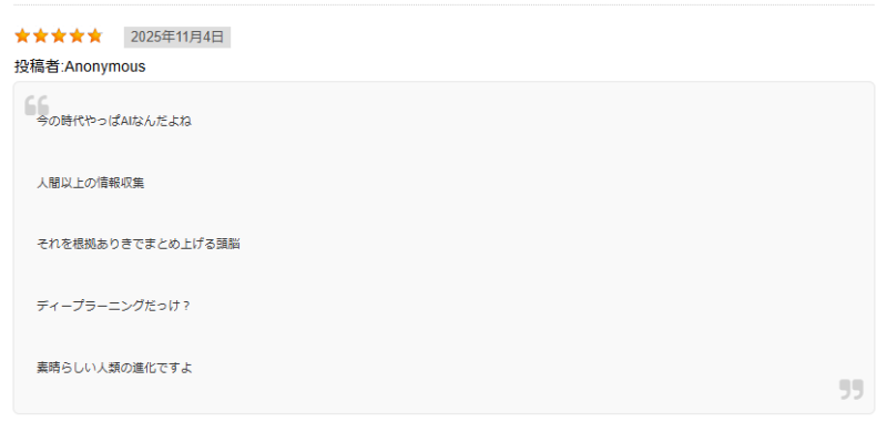 レビューサイトには、以下のような好意的な声が寄せられています。