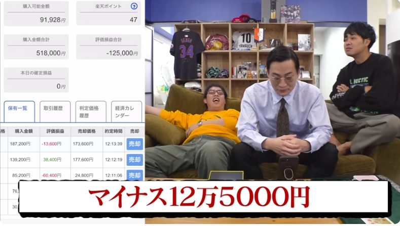 さらば青春の光のYouTube動画でも、最終的に約51万円の投資に対し、12万5,000円の損失を出しています。