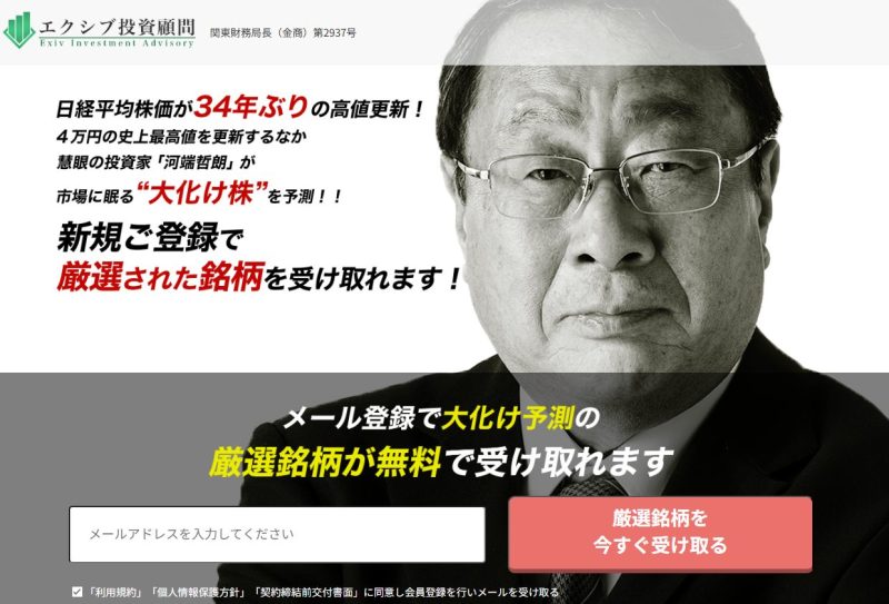 エクシブ投資顧問(運営会社:株式会社インベストジャパン)は、金融庁に登録された正規の金融商品取引業者です。