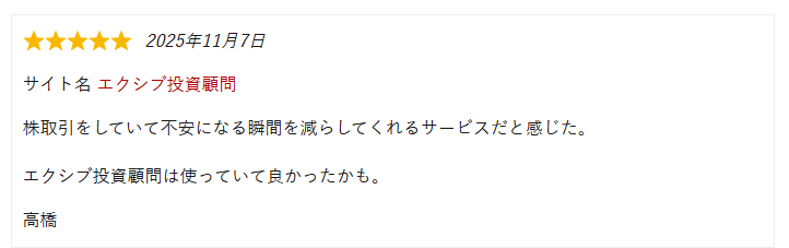 口コミサイトやレビュー記事では、エクシブ投資顧問を評価する声が多いです。