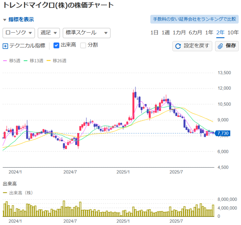 「ウイルスバスター」の知名度は高く、サイバーセキュリティ銘柄の筆頭格で、海外売上比率も高いグローバル銘柄といえます。