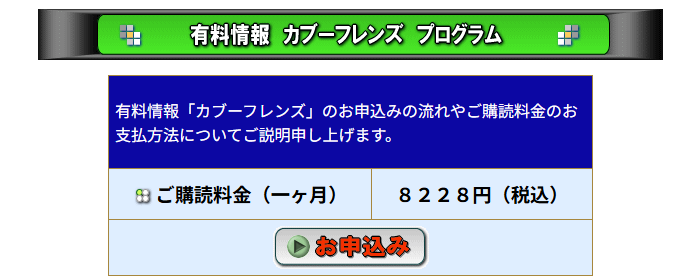 有料版は「カブーフレンズ」となり、月額8,228円の購読料金がかかります。
