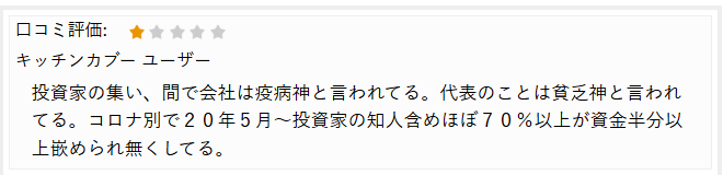 カブビト(旧キッチンカブー)に対する投資家の口コミ・評判