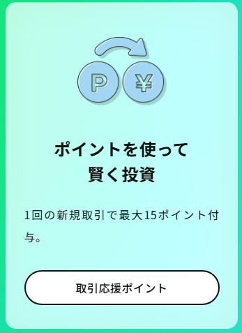「取引応援ポイント」というシステムがあり、取引するたびにポイントが貯まって、それをなんと投資資金に充当できます。