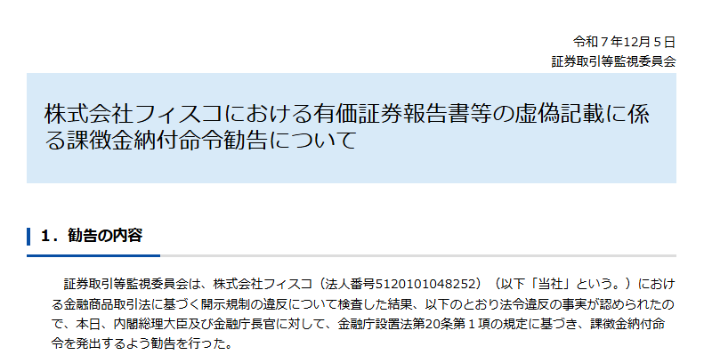 その決定的な理由は、2024年から2025年にかけて世間を騒がせた、証券取引等監視委員会(SESC)による課徴金納付命令の勧告です。