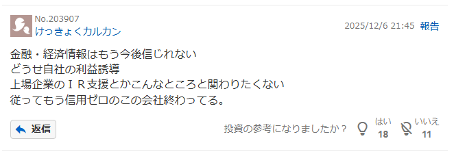 かつては株主優待に使えたり、レポート購入に使えたりという「トークンエコノミー」の夢が語られましたが、現状は事業として事実上の停止状態にあると言わざるを得ません。