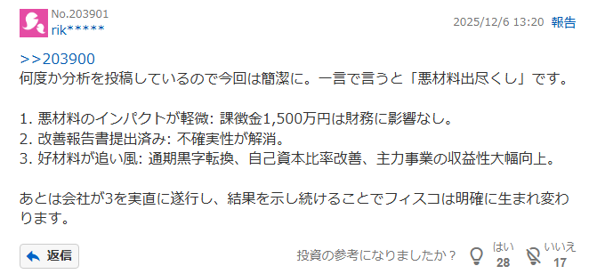 このガバナンスの欠如も、投資家から「フィスコはやばい」と警戒される大きな要因となっています。