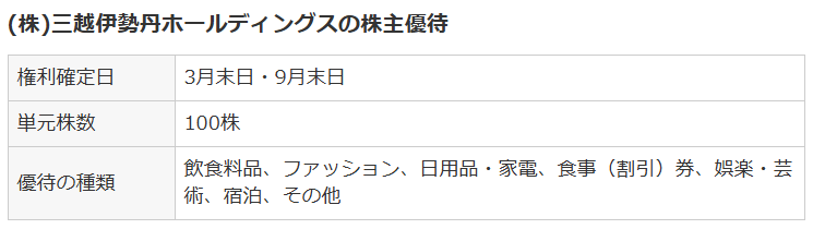 特に都心部に住んでいて、贈り物や日常のちょっとした贅沢に百貨店を利用する人には、お得度の高い優待株です。