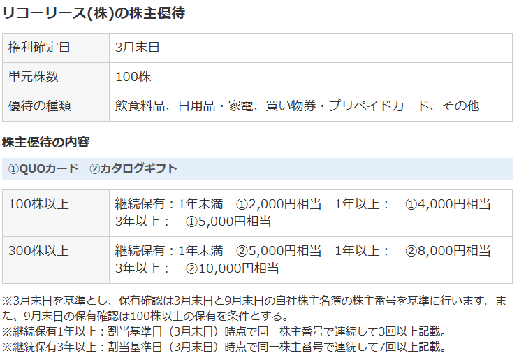 リコーリース(8566):安定感抜群のQUOカードと高配当