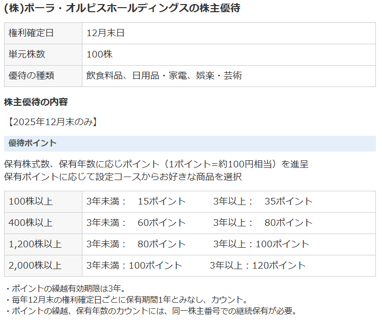 女性投資家なら知っておきたい優待銘柄がポーラ・オルビスホールディングスです。