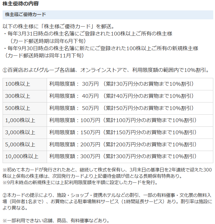 ただし、「近くに三越や伊勢丹がない」「そもそも百貨店で買い物をしない」という人には、全く無価値な優待になってしまいます。