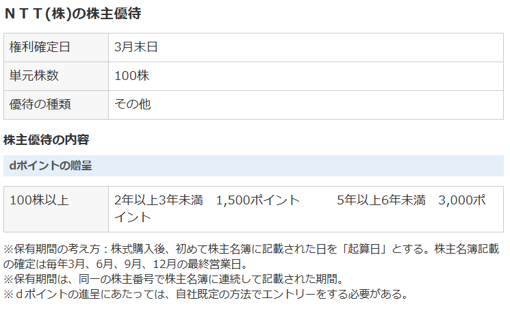 100株保有で、保有期間に応じてdポイントが付与される仕組みは、まさに持っているだけでお小遣いが増える感覚を味わえます。