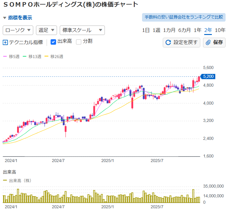 その結果、東京海上ホールディングスやMS&ADインシュアランスグループホールディングスといった競合他社に比べて株価の回復が遅れ、相対的な割安感が生じています。