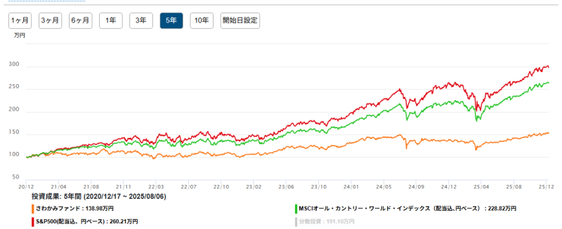 手数料の高いアクティブファンドに期待するのは指数以上の結果ですので、さわかみ投信のパフォーマンスでは投資する意味がありません。
