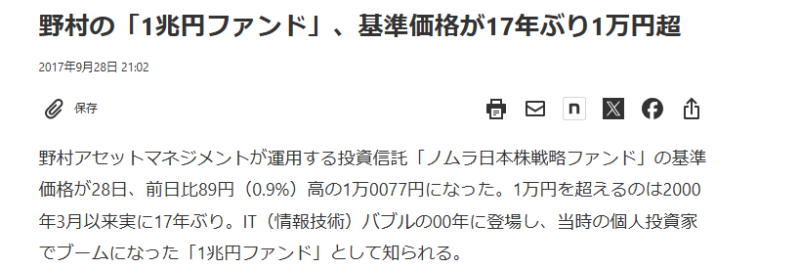 ノムラ日本株戦略ファンドは、野村アセットマネジメントが運用し、野村證券の圧倒的な販売力によって、わずか短期間で約1兆円を集めた「怪物ファンド」です。