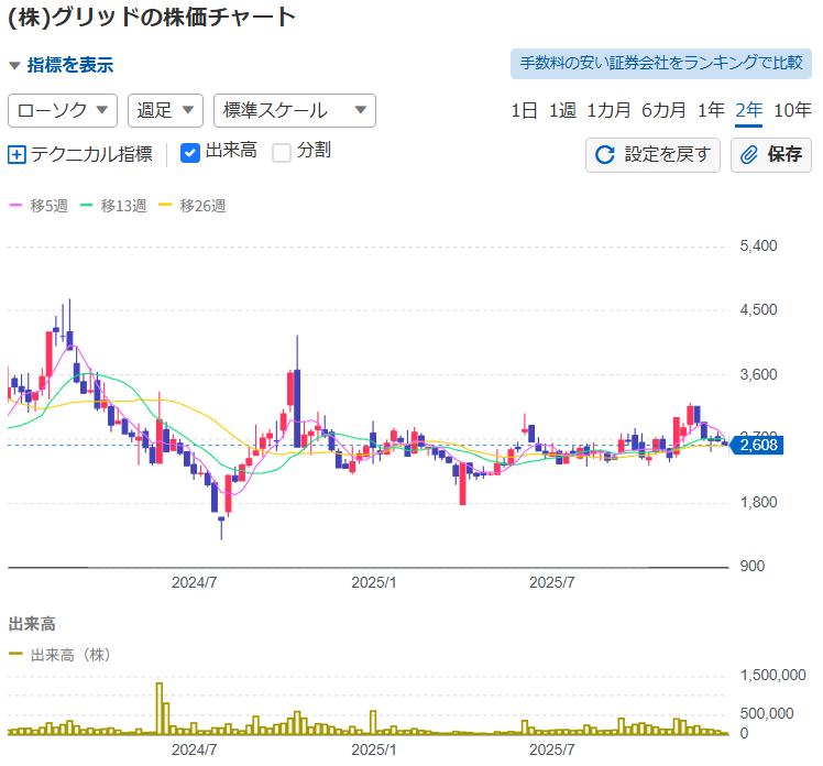 東証グロース市場 出所:Yahoo!ファイナンス 2025年12月30日時点