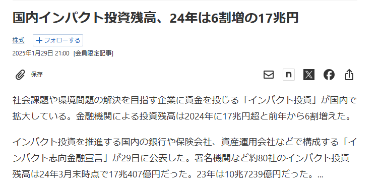 2024年度、日本のインパクト投資残高は17兆円を突破しています。