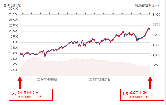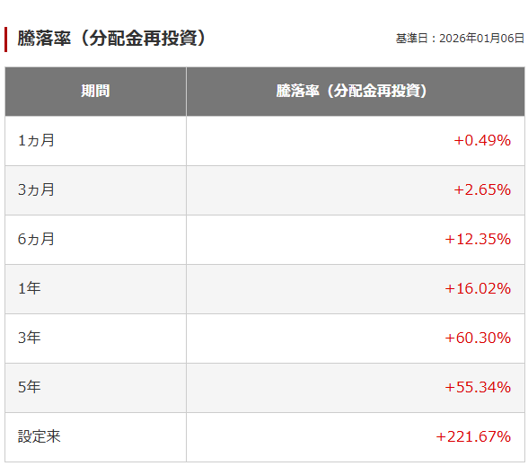 2019年6月17日からの設定来リターンはプラス221%超えです。