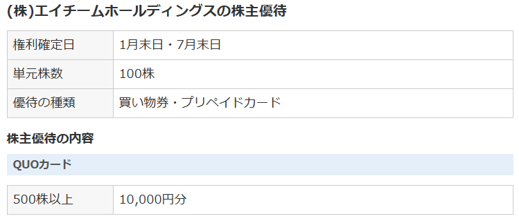 株主優待においては、500株保有で、クオカード10,000円分が贈呈されます。