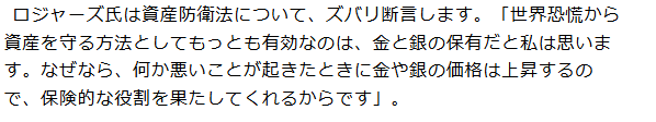 世界恐慌から守るのにもっとも有効なのが銀や金だと、ジム・ロジャーズ氏は主張しています。