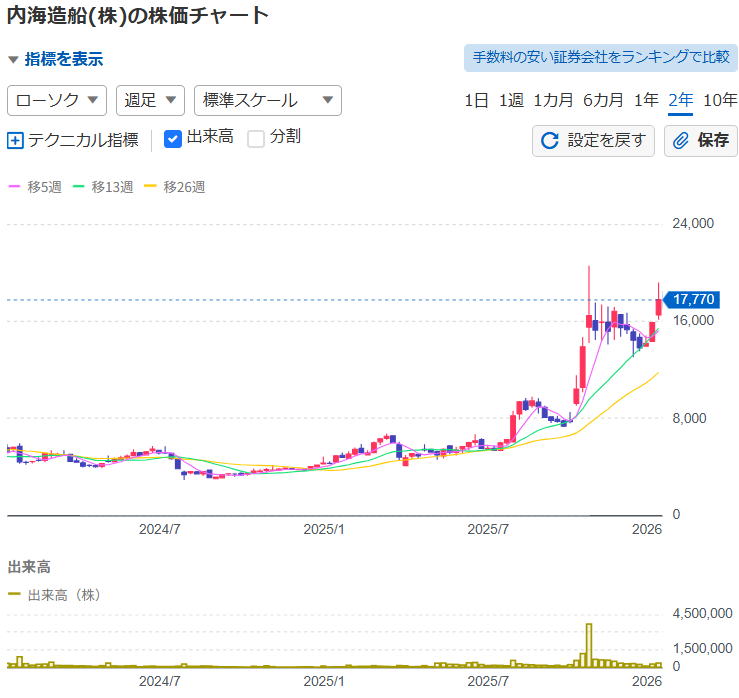 しかし、内海造船株は流動性が低いため、一度売買が集中すると価格が乱高下しやすいというリスクをはらんでいます。