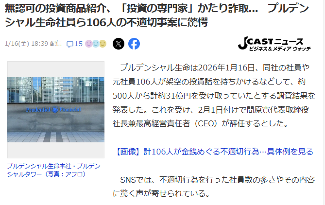 「あのプルデンシャル生命で、まさか詐欺事件?」