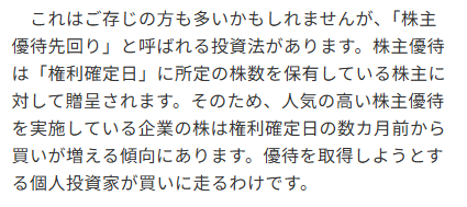 彼が得意とするのは、「優待先回り(波乗り)投資」です。