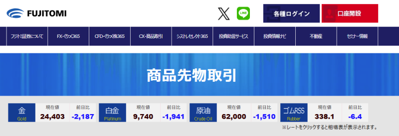 フジトミ証券の主力商品は、東京金融取引所(TFX)に上場されている「取引所形式」の商品です。