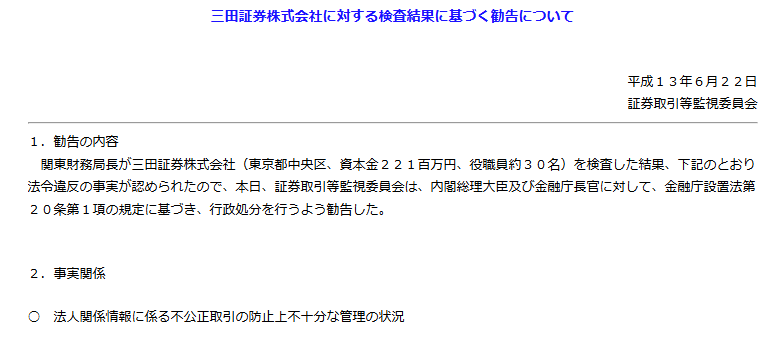 三田証券について今回が完全な初犯かと言われると、そうではありません。