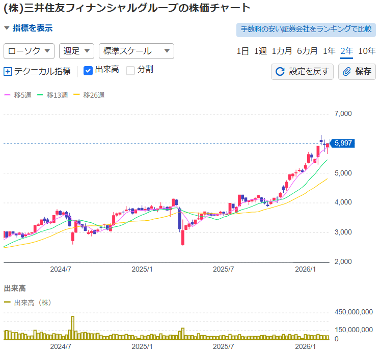 三井住友フィナンシャルグループ(8316):累進配当を掲げるメガバンク【3月末決算】