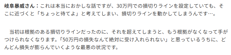 岐阜暴威氏の最大の弱点と言えるのが「損切りができない」ことです。